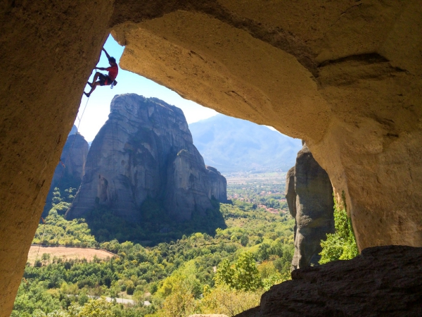 Diagonian Devil (8a+) in Meteora's Dragon's Cave (c) Colette McInerney