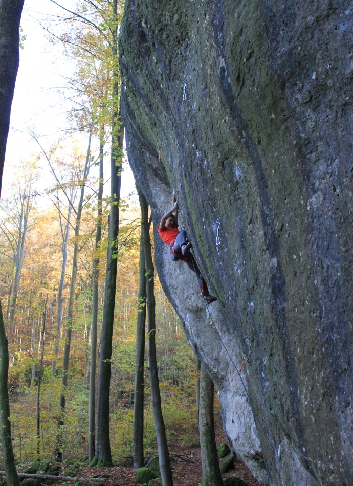 Veröffentlicht 01/11/2014 mit 690 × 950 in The Essential (9a) in Frankenjura In the middle section (c) Louisa Firnenburg