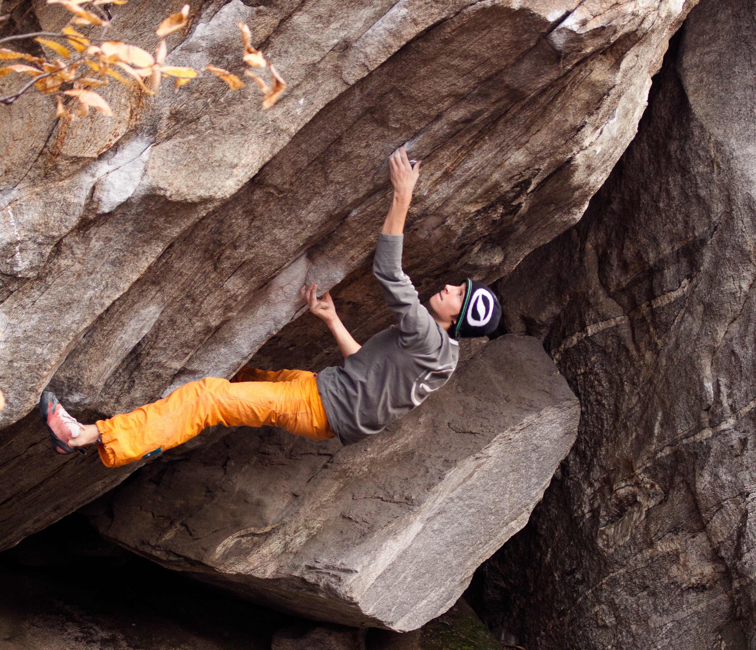 Last weekend I decided to go bouldering in Cresciano trying some projects I wasn’t able to finish two weeks ago. „Frank´s wild years“ was one of the best looking problems! I was really motivated to try this amazing line on pinches. By the way I met Jan Hojer and Lullu Deubzer which was really surprising. I didn’t expect to meet some friends from Germany here After checking out every move, while my crew took some time to try other problems in the wood, that was the chance to concentrate myself and to be totally focused on the climb. With one crashpad and my bag as another pad covering somes stones on the bottom it took me some more tries to top out „Frank´s wild years“ (FB 8A/8A+)! Superb problem and one of the best boulders I’ve ever done!